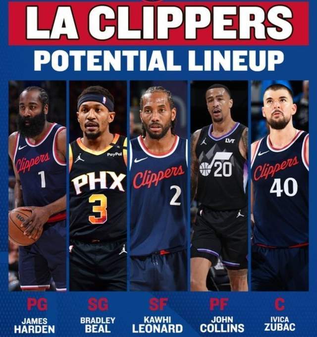 卢指导:快船已确定哈登、比尔、伦纳德和祖巴茨四名首发